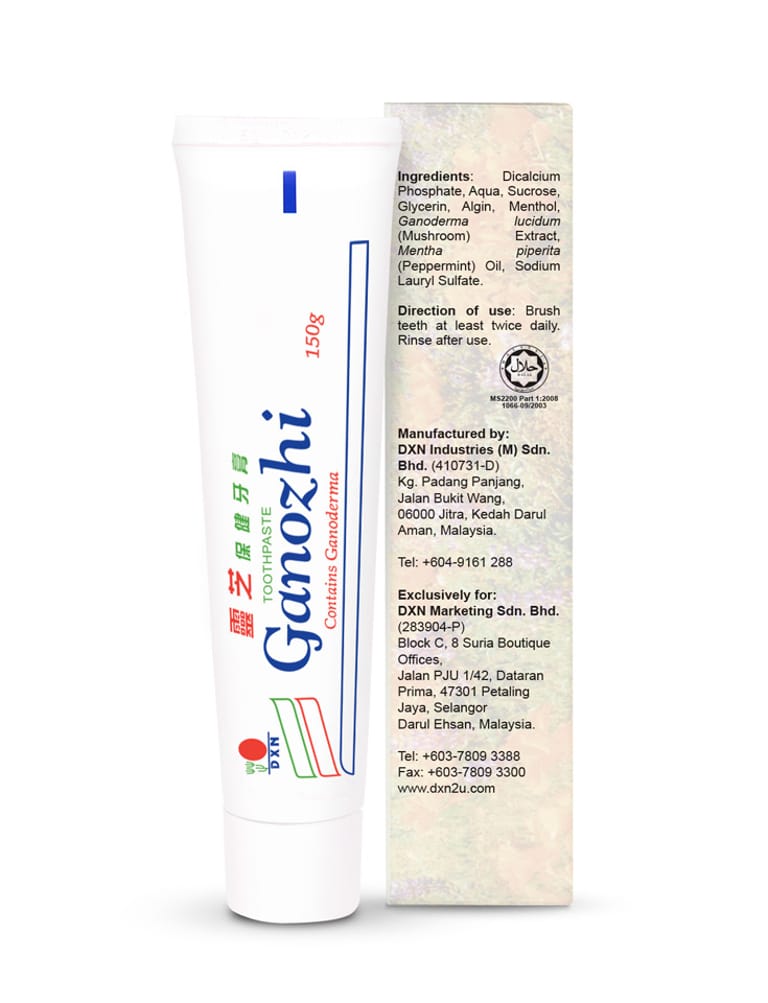 Innovative toothpaste that comes with high quality Ganoderma extract, food gel, menthol and food flavoring. It does not contain saccharin or colouring and will effectively clean your teeth to provide a healthy fresh breath and brighten every smile.